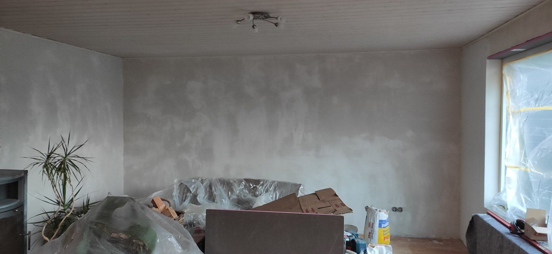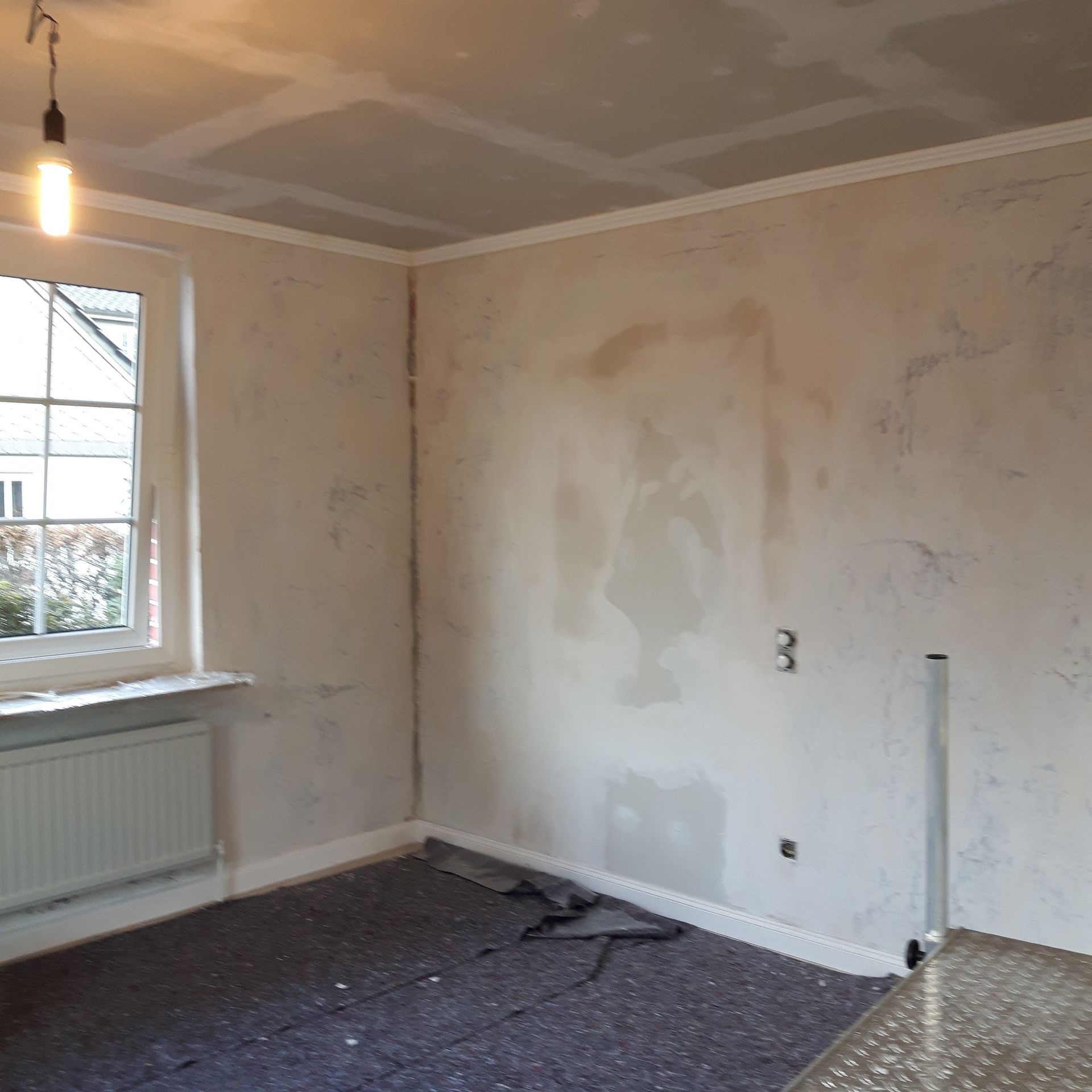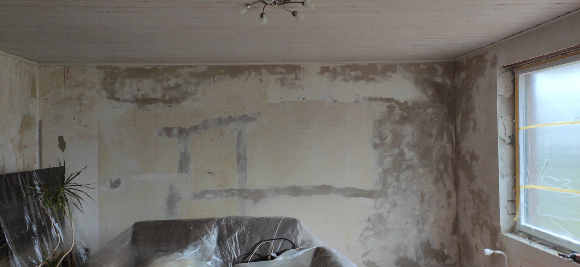 Tapeten wurden entfernt, Wände grundiert und Rissbinden eingearbeitet.