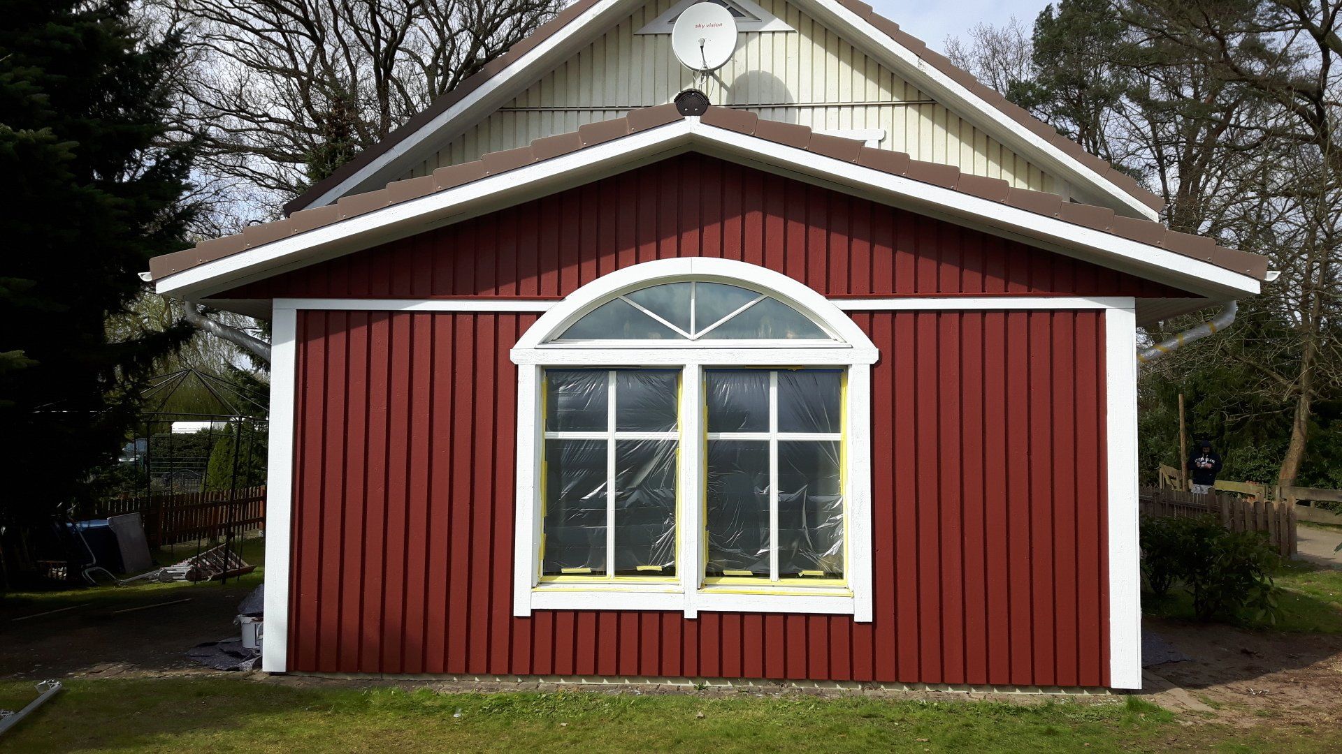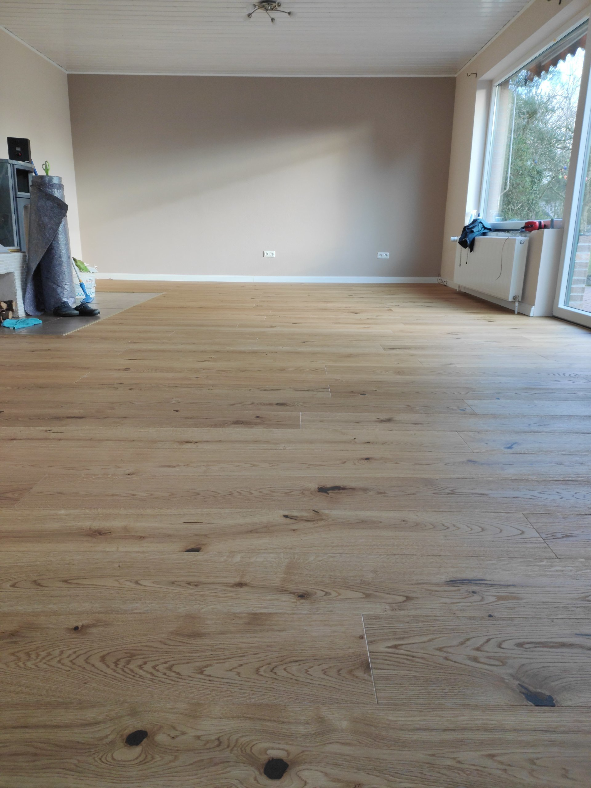 Die Decke wurde nachlackiert mit Osmo Holzwachs und der Boden gespachtelt