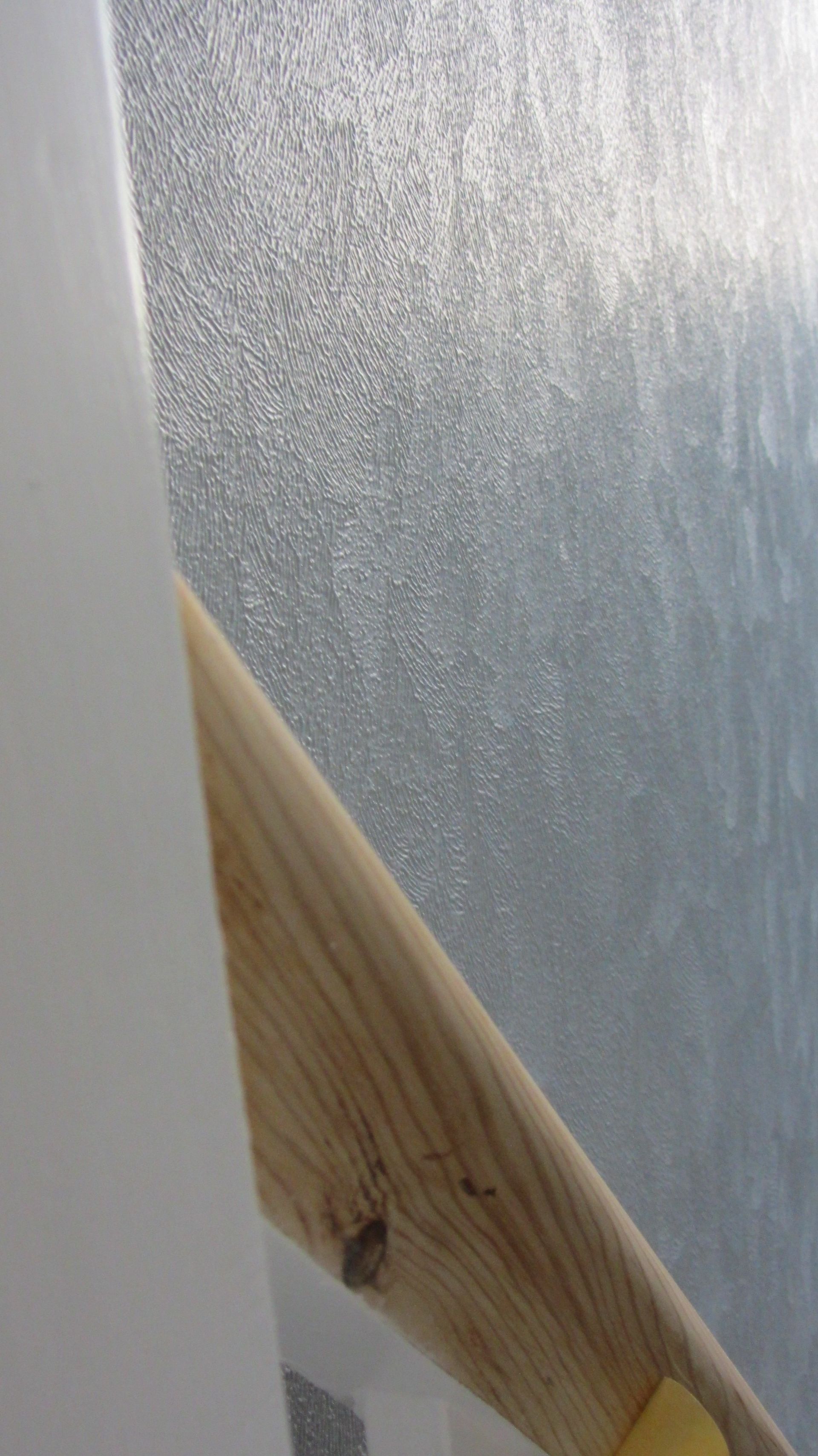 Maß- und Schneidvorgaben auf der Rückseite, Wand grundieren und dann einkleistern, Bahnen passgenau aneinanderfügen